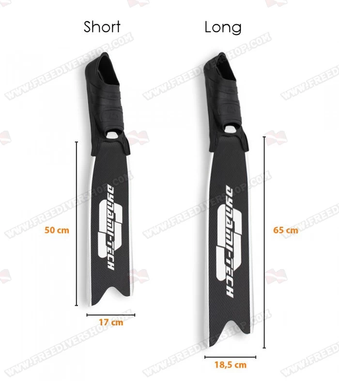 High quality Lab-Made Dynamitech carbon fins, these are the smallest yet most powerful carbon freediving fins on the market.