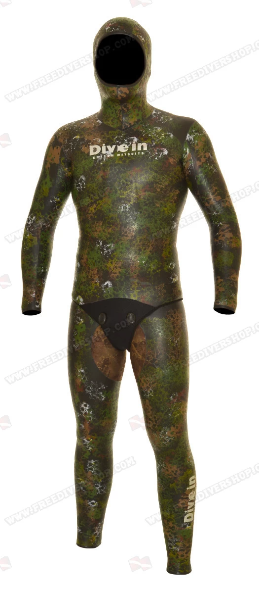 Tailor made camouflage smoothskin wetsuit for freediving and spearfishing from Divein.