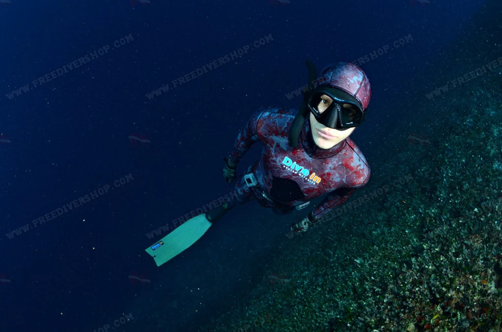 Red camouflage open-cell wetsuit for freediving and spearfishing from Divein.