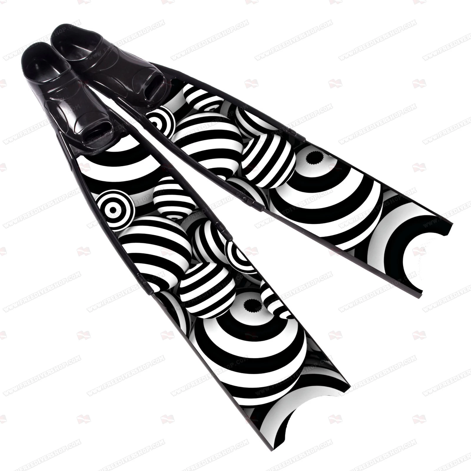 High quality limited edition freediving and spearfishing fins with Illusion design, hand made blades from 100% carbon / fiberglass, processed under vacuum in molds.
