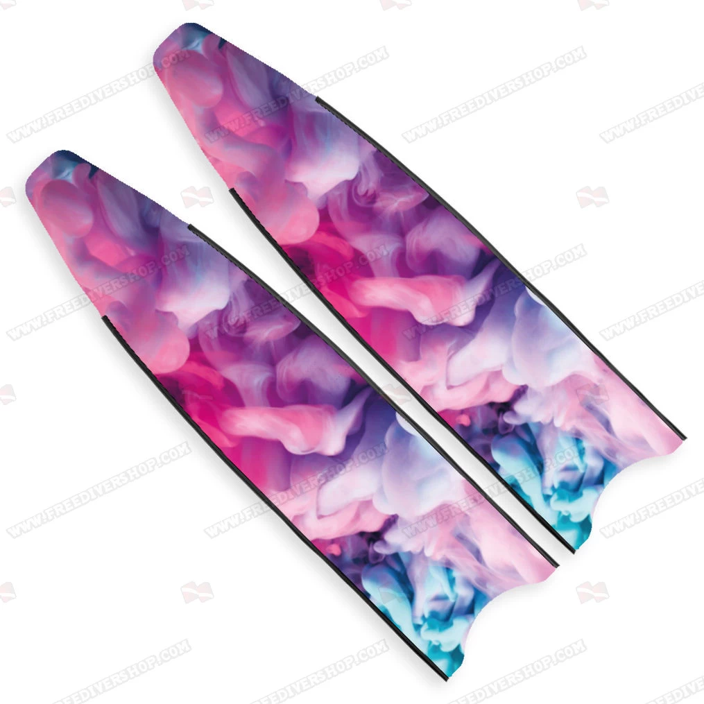 A pair of high quality limited edition freediving and spearfishing fin blades with Wave Flow design, hand made from a high quality composite fiber mixture, processed under vacuum in molds.